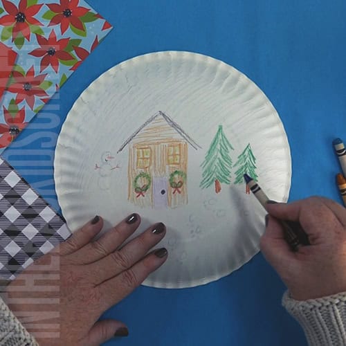 - The first step is to grab your crayons or markers and draw a wintery scene. You can also make this into a Christmas snow globe by adding Christmas details into your picture.