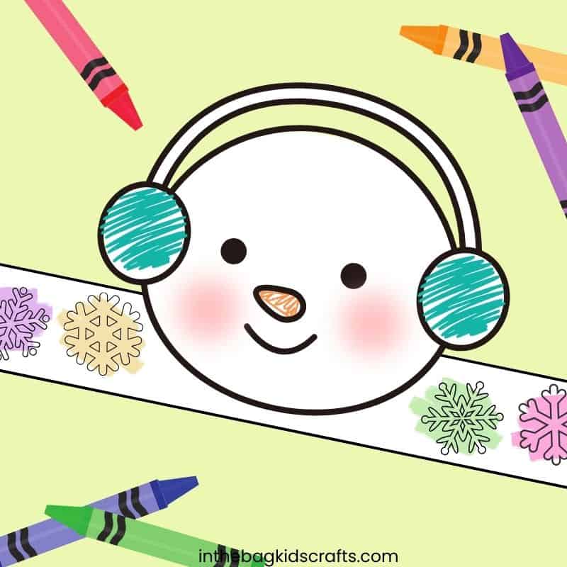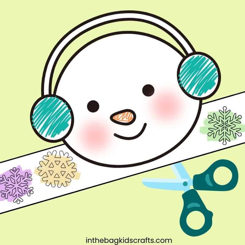 Now, cut out the Winter craft hat that you’ve colored and decorated, including the back strap.