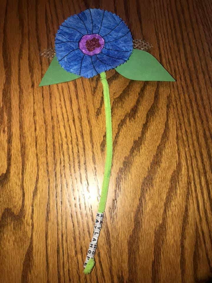 Here are some of the flowers that my friends made during that Facebook Live session. I would love to see what you make too! Send pics to hello@inthebagkidscrafts.com or share them to the “In the Bag Kids’ Crafts” Facebook group.
